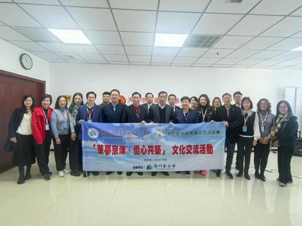2025年11月14日上午,澳门归侨总会副会长赵文炎一行17人到访天津市侨联。天津市侨联主席李占勇亲切会见,天津市侨联副主席于滨、秘书长李卫新、社会工作联络部相关同志出席。