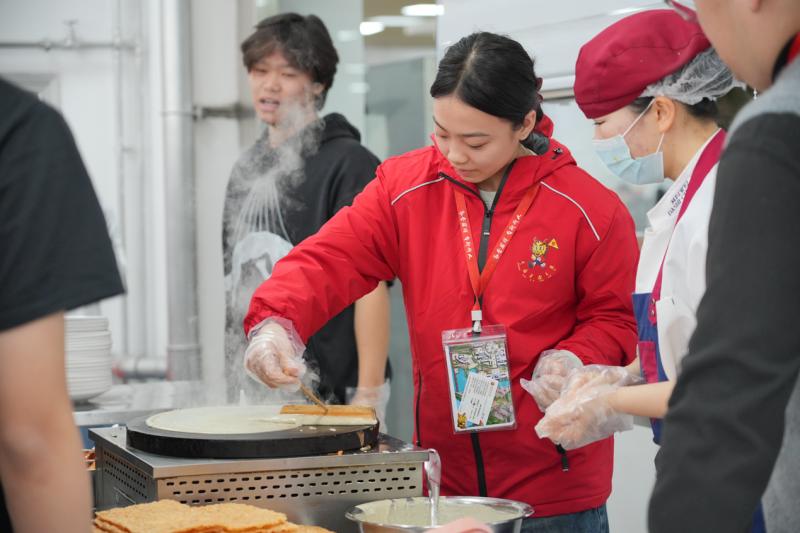 制作天津特色小吃煎饼馃子的过程,让营员们直呼“神奇”。来自蒙古国的祁文博小心翼翼地摊开面糊,打上鸡蛋,抹上酱料,放入馃子:“以前只在餐馆见过,亲手做是第一次。酥脆的口感,丰富的层次,真是舌尖上的享受。”