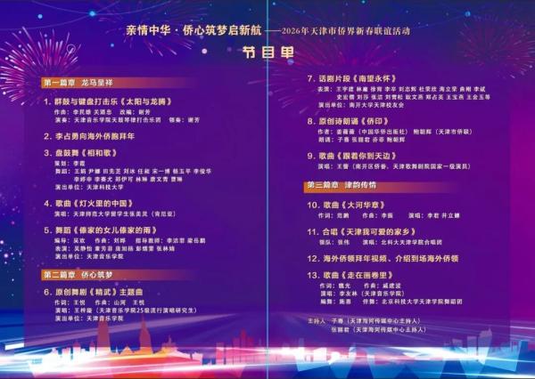“亲情中华·侨心筑梦启新航”——2026年天津市侨界新春联谊活动节目单