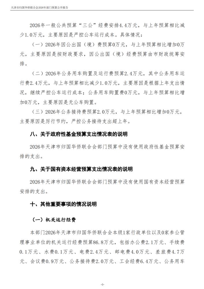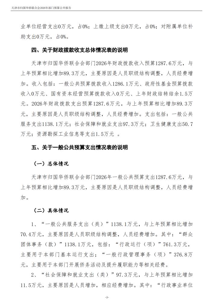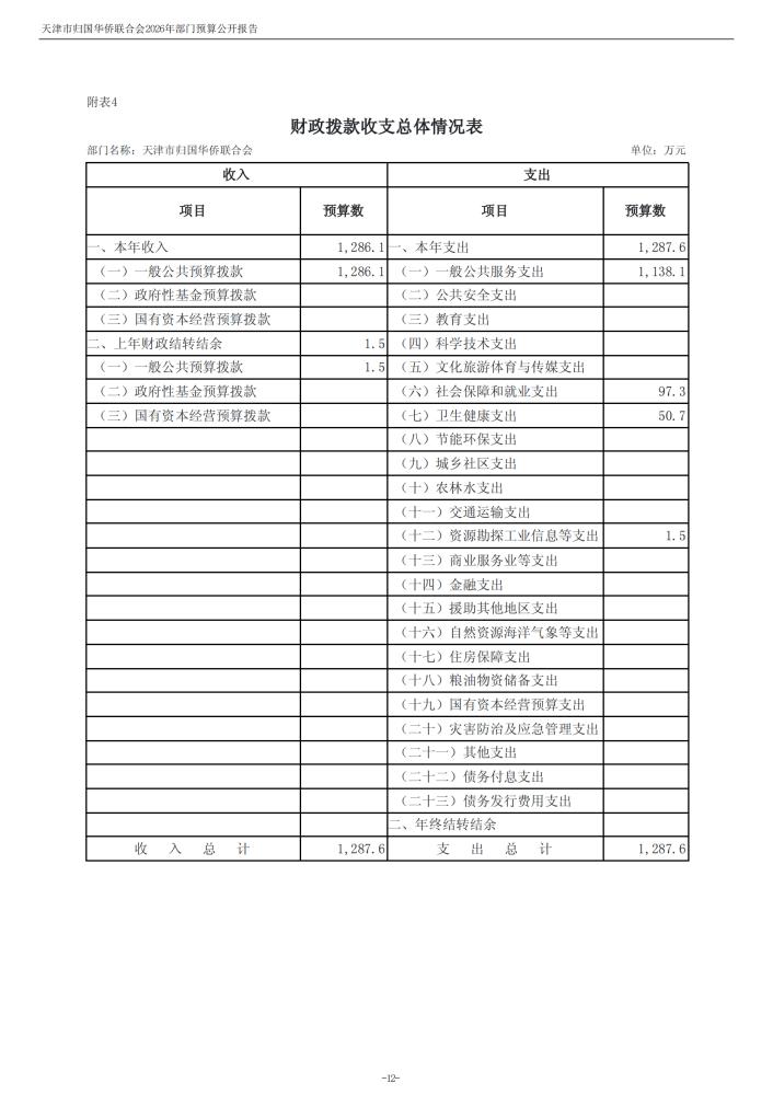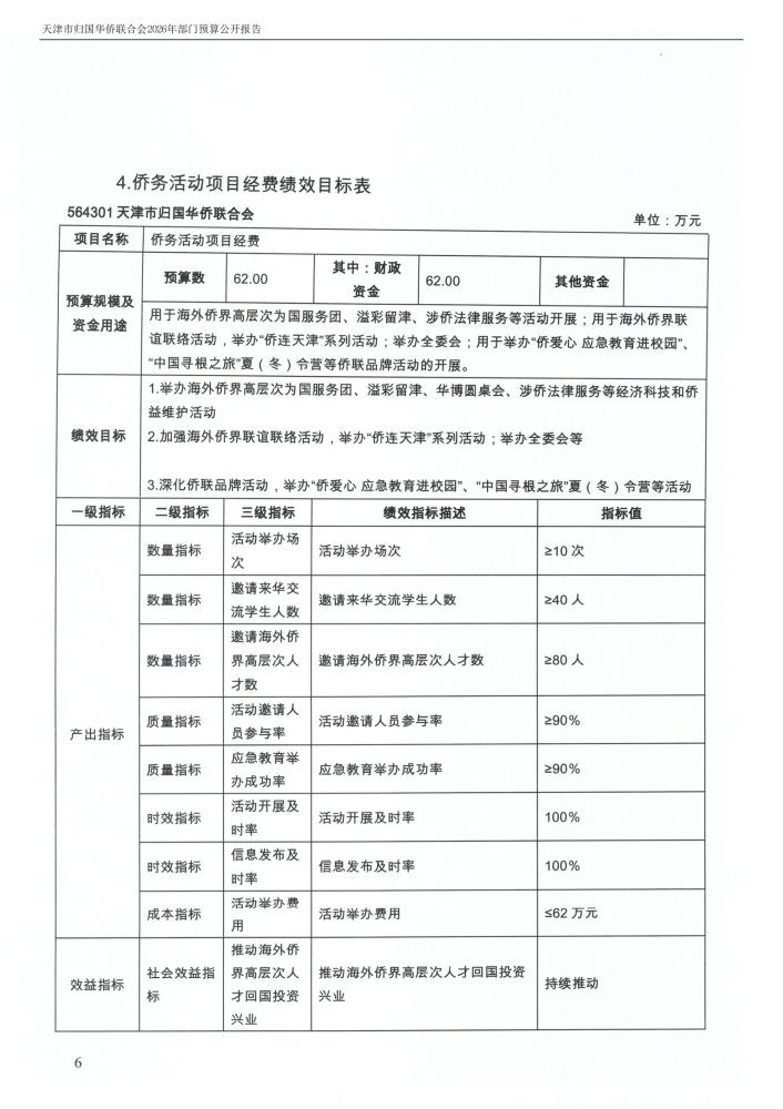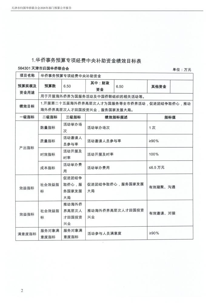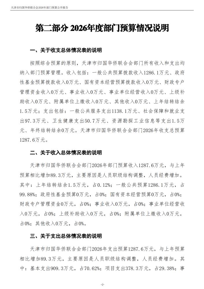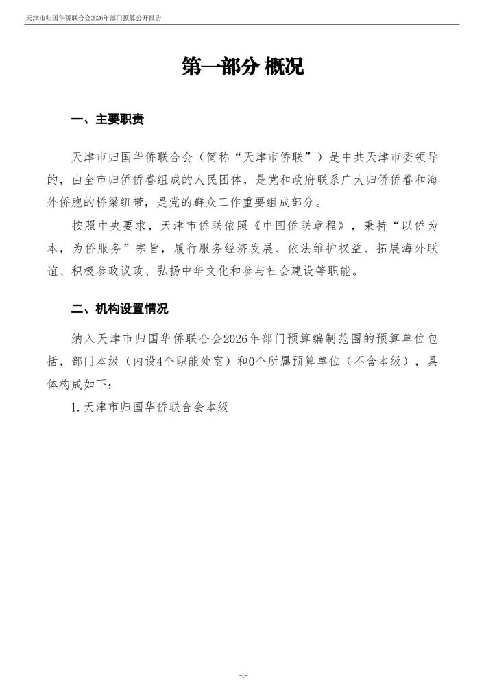 天津市归国华侨联合会2026年度部门预算公开