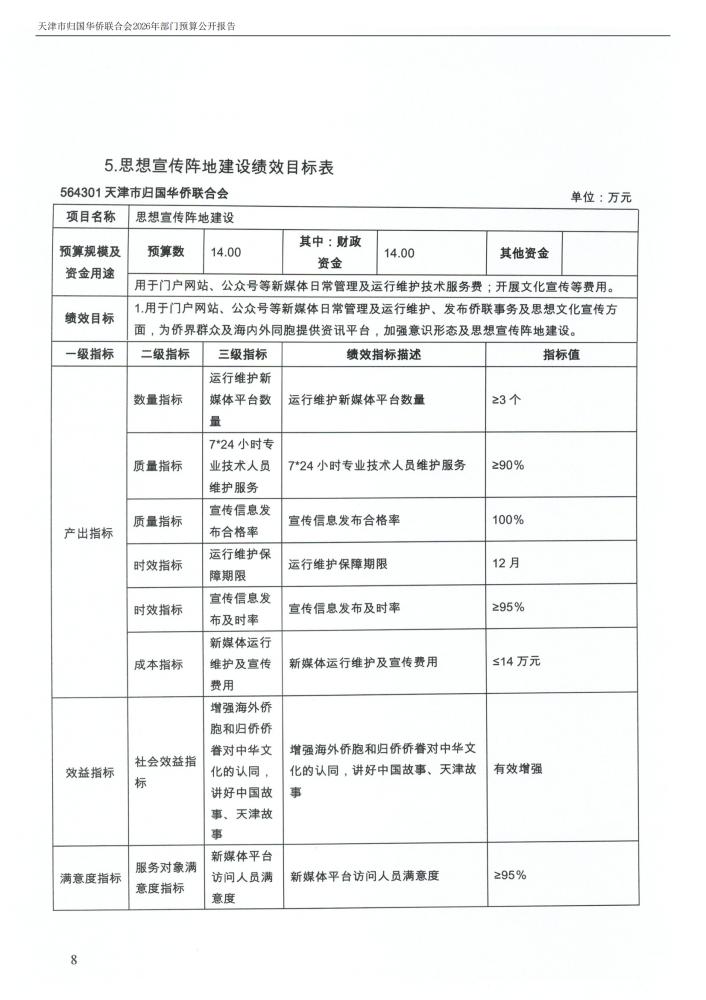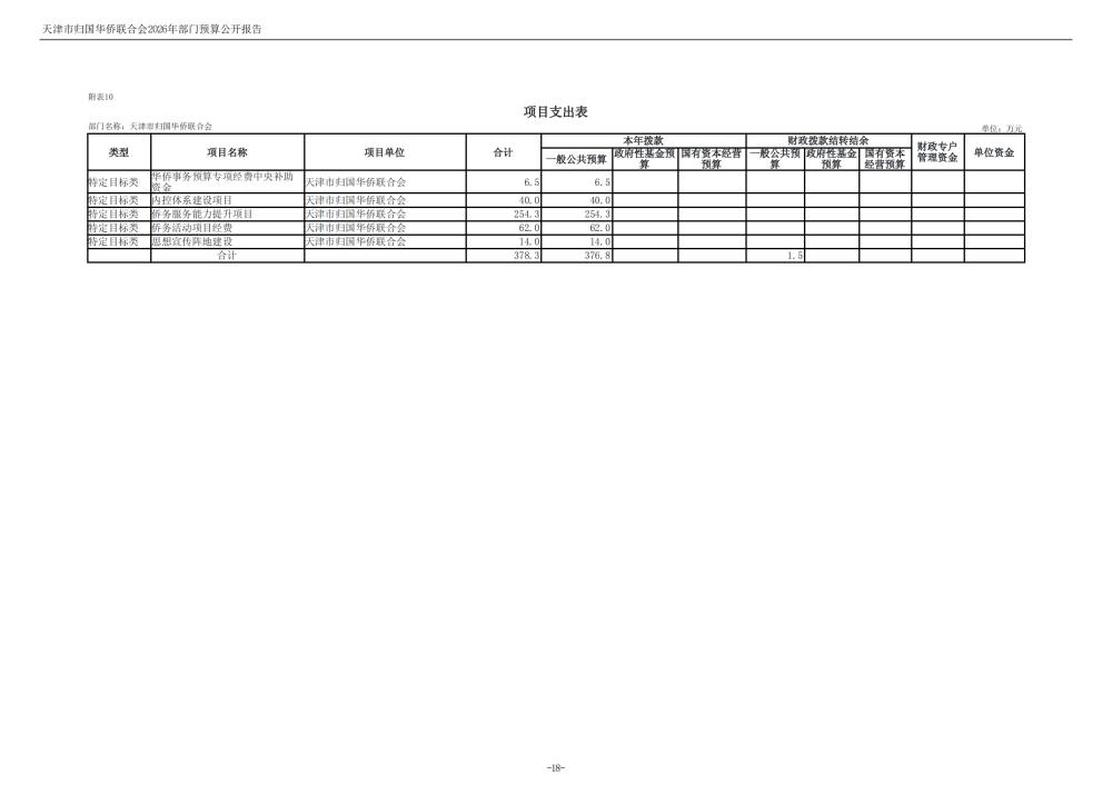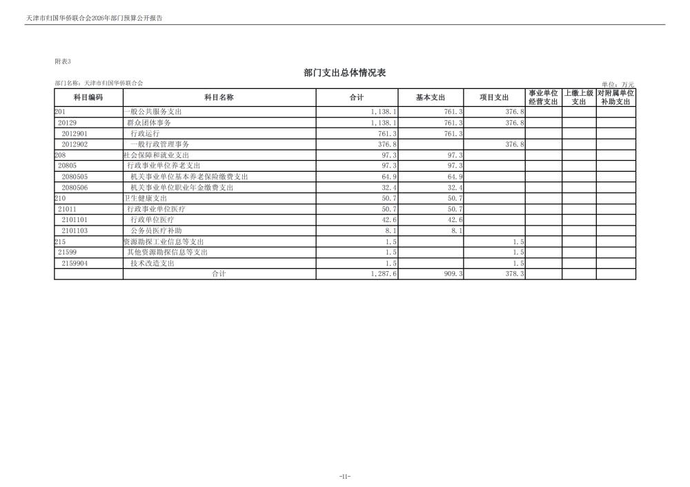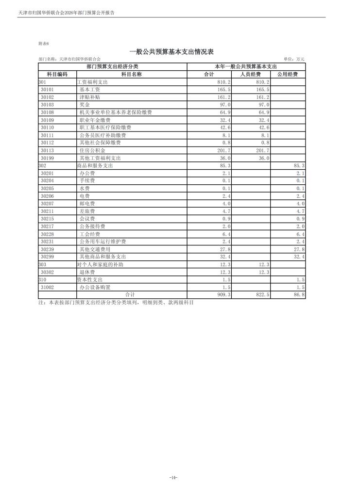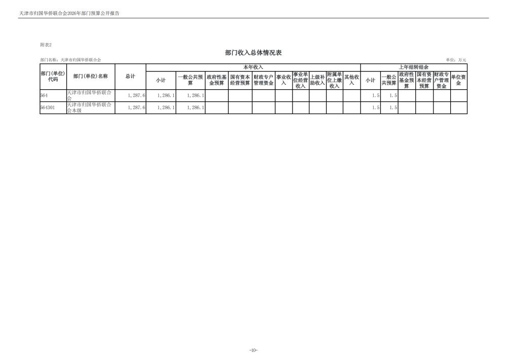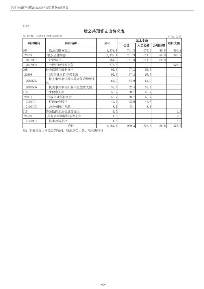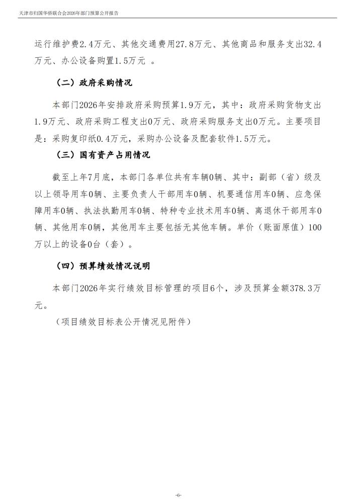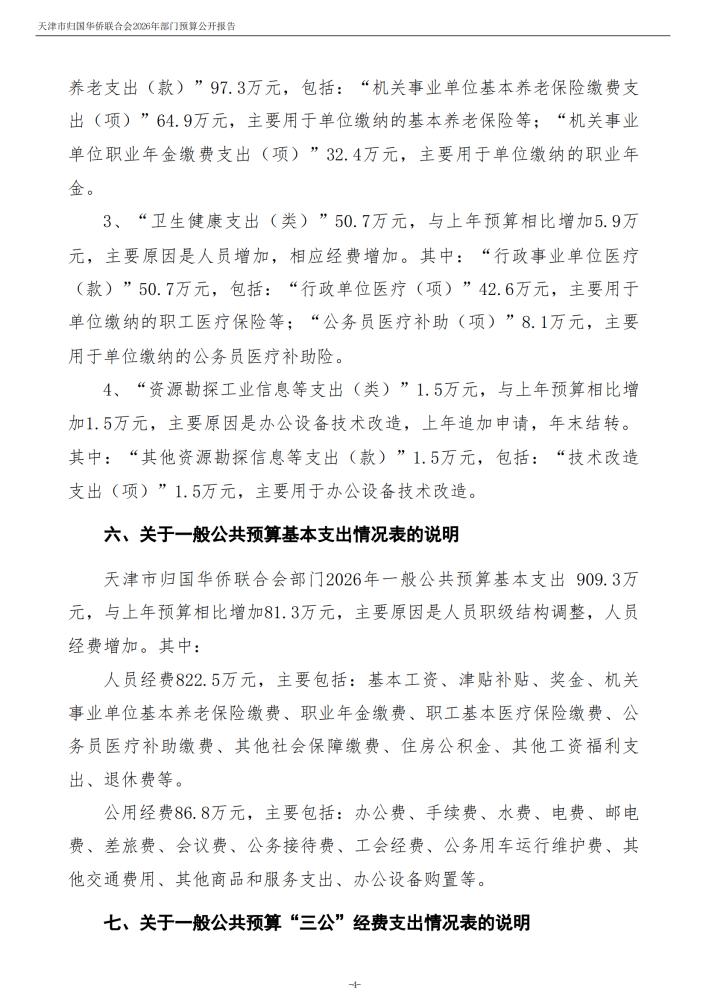 天津市归国华侨联合会2026年度部门预算公开